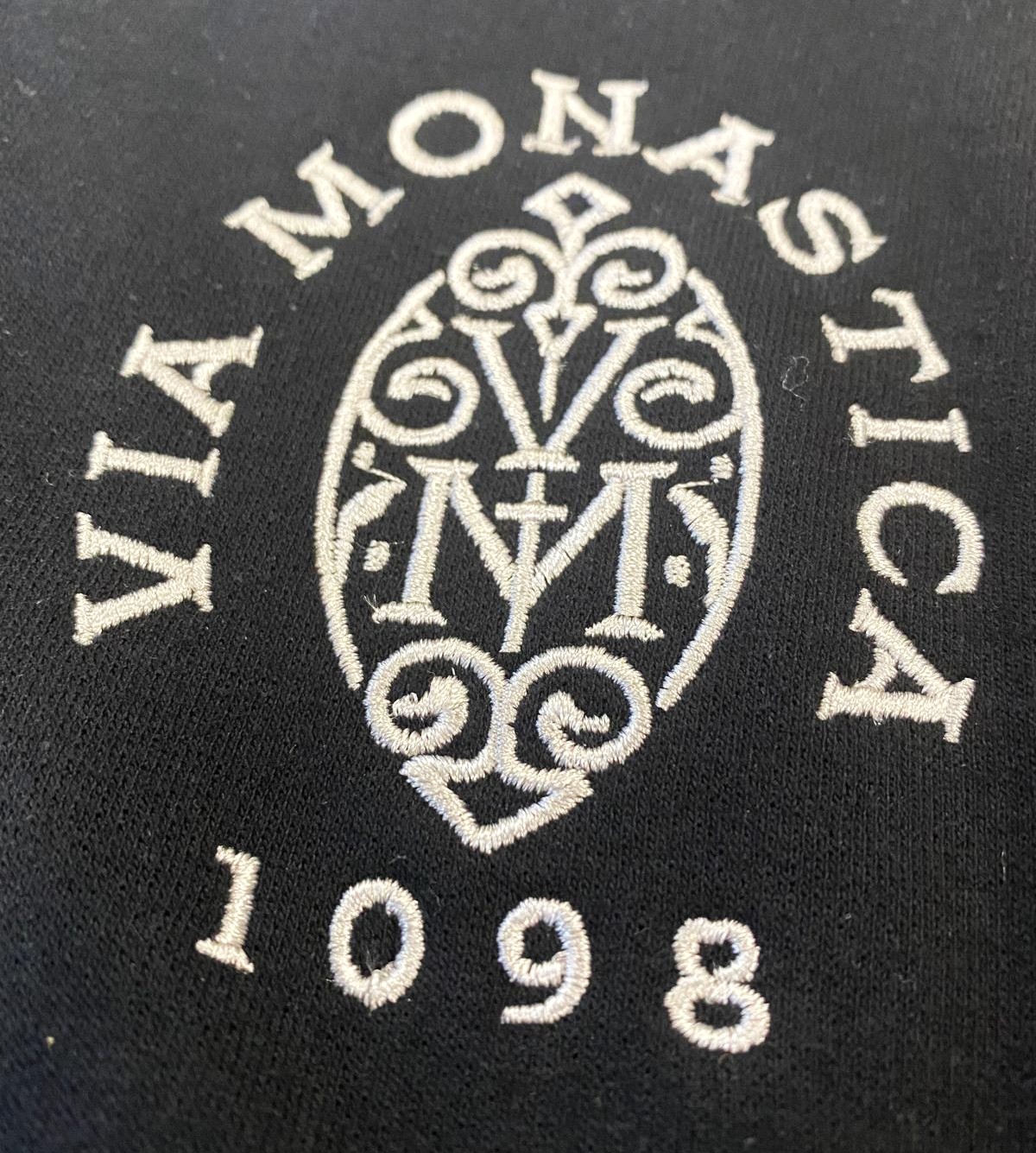 Das Logo der Via Monastica besteht aus den Buchstaben V und M sowie der Zahl 1089. V und M sind zunächst einfach die Initialen von Via Monastica, welche allerdings auch als Virgo Maria, also "Jungfrau Maria" gelesen werden können. Die Zahl 1089 bezieht sich auf das Jahr, in welchem das erste Kloster der Zisterzienser Cîteaux gegründet worden ist.